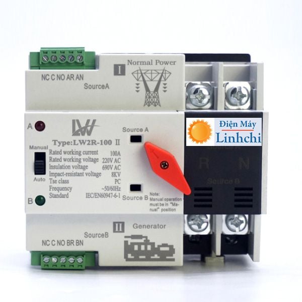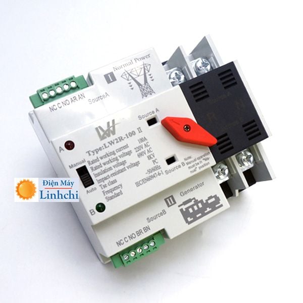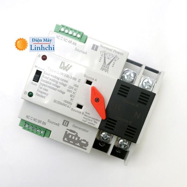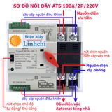 Bộ chuyển nguồn ATS 100A 2P cầu dao đảo chiều tự động chuyển đổi dùng điện của nguồn dự phòng khi nguồn ưu tiên mất điện và chuyển về dùng điện ưu tiên khi nguồn ưu tiên có điện