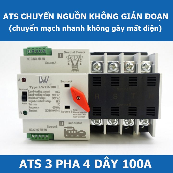 - Điện áp sử dụng của bộ ats 3 pha 100A: 3 pha 380V.
