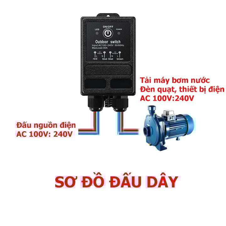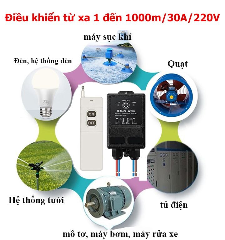 Bộ công tắc điều khiển từ xa OUT DOOR SWICTH 220V 1km (1000m) công suất lớn 30A 3000w điện áp 220v bật tắt máy bơm nước máy rửa xe