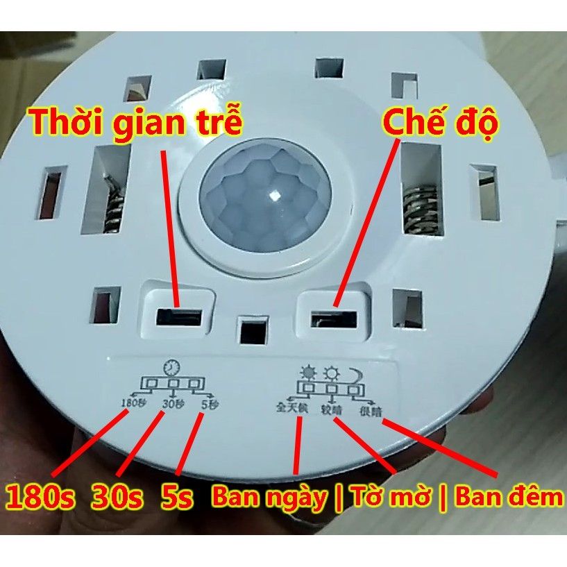 + Thời gian trễ từ 40s (Tự ngắt khi không có người): có 3 mức tùy chỉnh: 5s, 30s, 180s