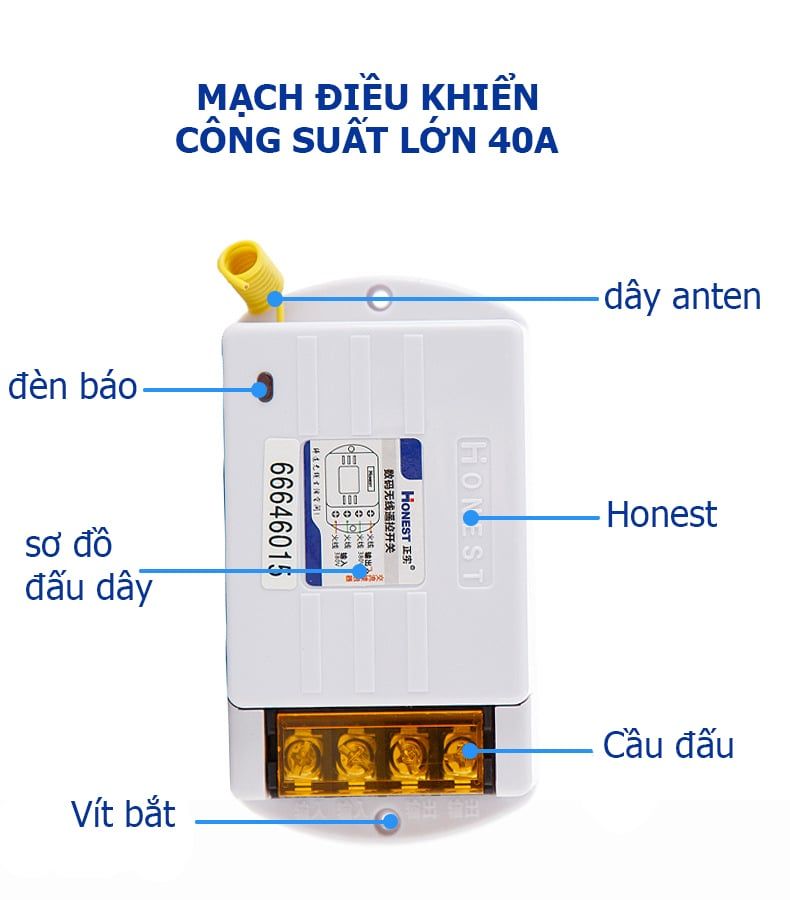 Bộ công tắc điều khiển từ xa Honest HT 6220KGD 40A dùng để: Bật tắt các thiết bị điện như máy bơm nước máy rửa xe đèn quạt và các thiết bị điện gia dụng...vvv