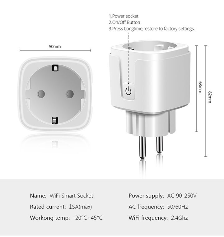 Sản phẩm này sử dụng phíc cắm 2 chân . Giúp cho ổ cắm có thể tương thích tốt và sử dụng cho nhiều thiết bị khác nhau. Điều khiển từ xa bằng smartphone ở bất cứ nơi nào, chỉ cần có internet (thông qua wifi, 3G, 4G) sử dụng app TUYA và Smart Life với vài thao tác cài đặt đơn giản là đã có thể sử dụng.